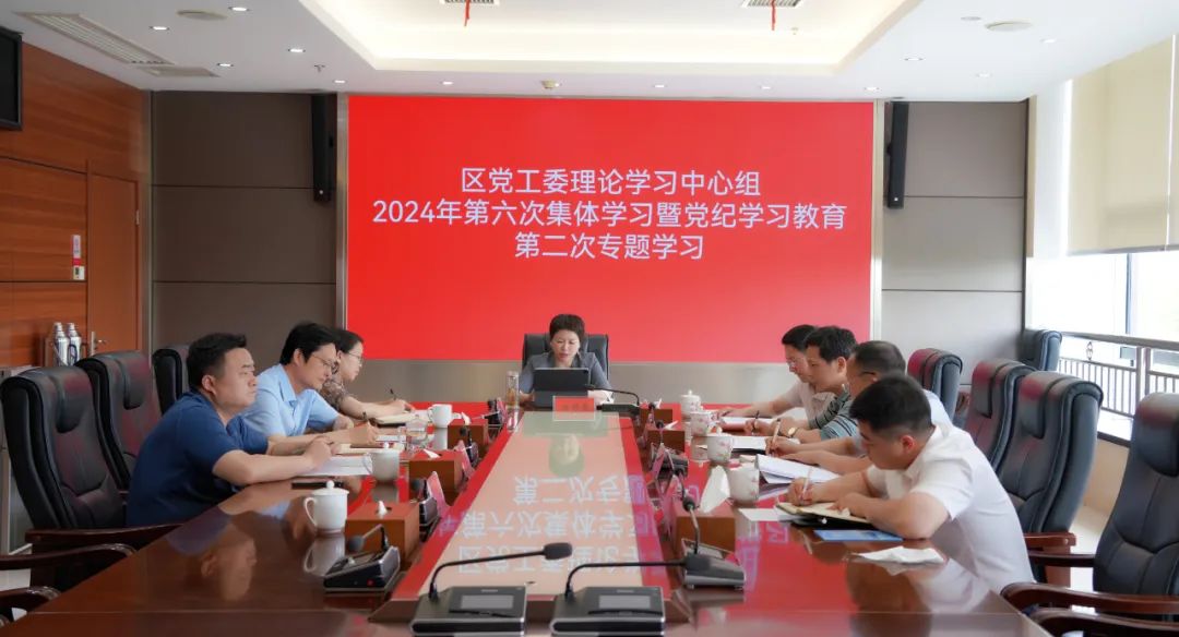 伍彩霞主持召开区党工委理论学习中心组2024年第六次集体学习暨党纪学习教育第二次专题学习