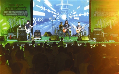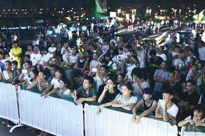 尽管天气炎热,可观众激情不减。有市民一家老小一齐前来,围着桌子,一边喝着啤酒、吃着小吃,一边听着音乐,好不惬意;还有不少市民用手机不停地对着舞台拍照、录视频,希望把最美好的画面定格并留作纪念;更多的市民是情不自禁跟着歌手合唱、呐喊,沉浸在音乐的世界中。