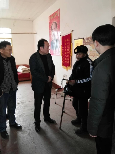区党工委书记刘涤尘慰问白鹤镇罗家湖抗战老兵杜廷官。