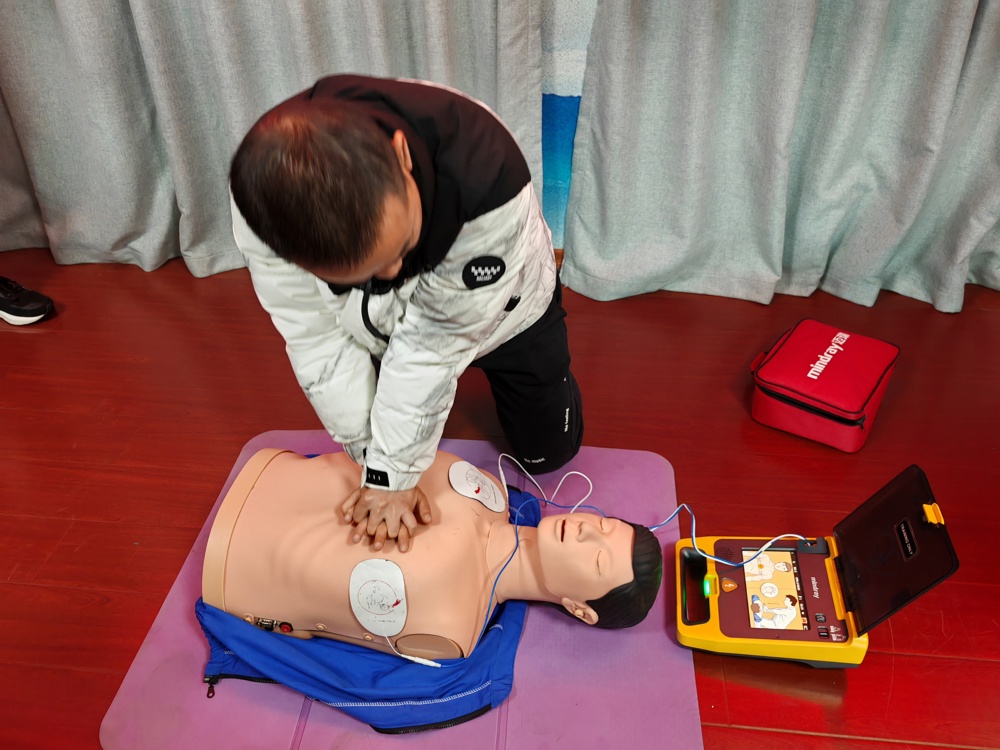 常德电视调频转播台职工上班地点分散,部分职工远离市区,面临着潜在健康风险。培训旨在提高职工的急救意识,增强职工的急救技能,确保在关键时刻能够正确、有效地进行急救处理。此次培训邀请到常德市红十字应急救护志愿服务队进行现场授课。培训现场,志愿服务队成员采取理论讲解与实际演练相结合的方式,为职工详细讲解了心肺复苏术、自动体外除颤仪(AED)、创伤包扎、气道异物梗阻紧急处理等专业知识。在志愿服务队成员“一对一”“手把手”的指导下,职工轮番实操演练,积极参与练习。
