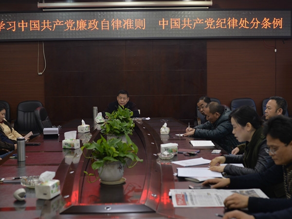 有关科室负责人带头领学《准则》和《条例》的原文,并通报“常德市纪委通报8起党风廉政建设责任追究典型案例”。