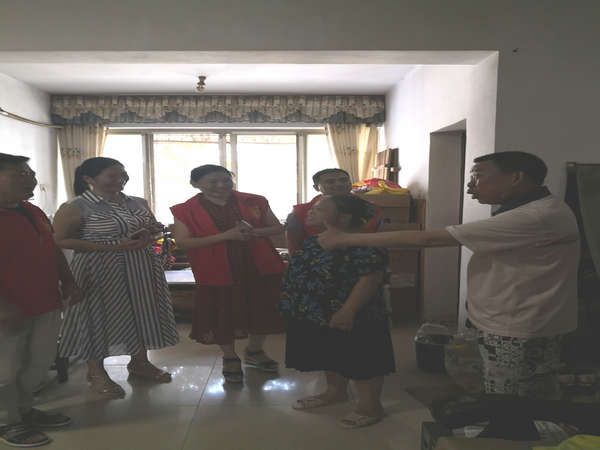 胡明亮是社区的一位老党员,丈夫身患多种疾病,医药花费较大,儿子离异,还有一位小孙女需要抚养,家庭重担落到她一人身上,生活困难。程朝辉等登门到她家中与她促膝交谈,过细地询问和了解老俩口目前的身体状况和家庭情况,开导她困难是暂时的,叮嘱老人好好保重身体,安全度暑,并为她送上慰问品,胡明亮接过慰问品,一再感谢:“谢谢,谢谢!谢谢党组织对我们老党员的关心!”情到激动处,还竖起大拇指表示赞许和谢意。