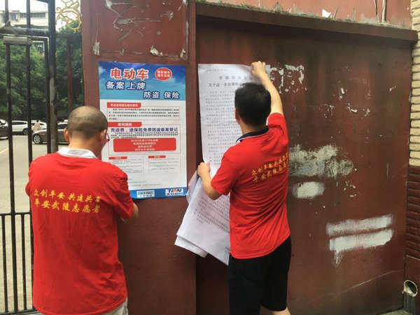 本次活动的主题是开展电动车物联网建设宣传。志愿者们一行5人在贾家湖社区网格员的带领下,沿校场街、朗州路张贴海报、通告,向门店经营业主、居民、行人发放电动车防盗备案登记宣传手册,并一一讲解电动车防盗知识,宣传加强电动车安全管理和提高安全防范意识的意义,这些举措推动了电动车防盗备案登记工作的开展。