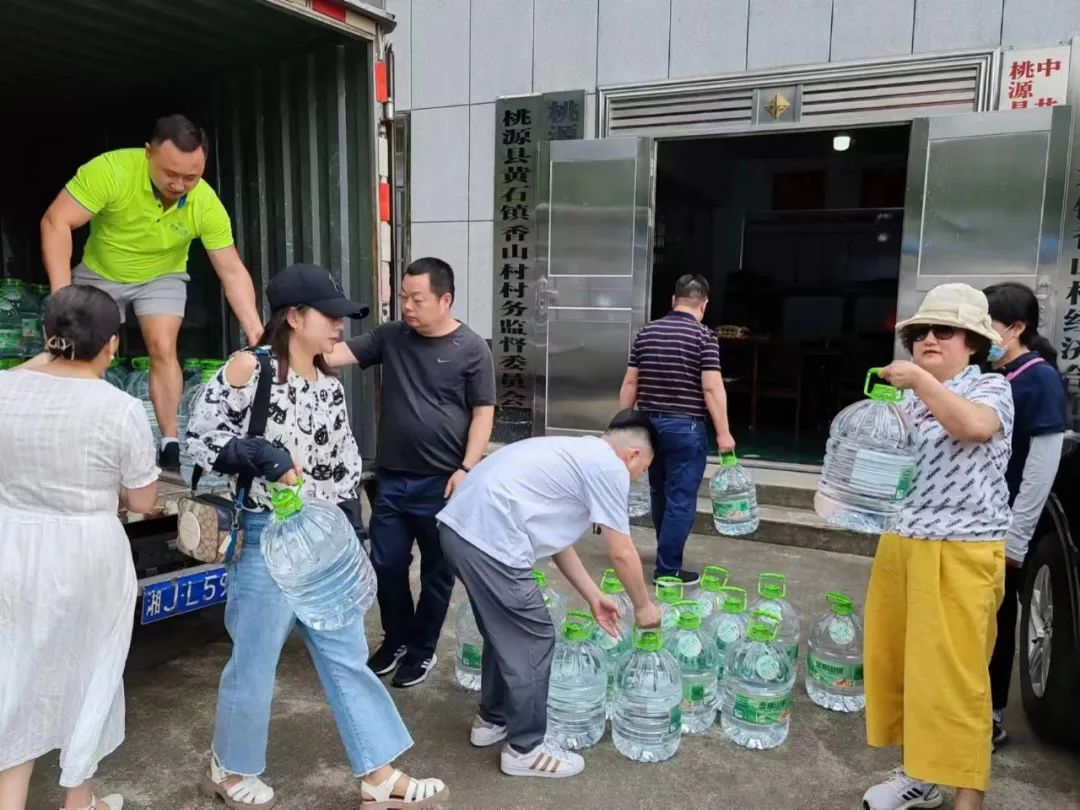 此前,李明一行了解到结对帮扶户受持续高温少雨影响,出现了用水困难、抽水供应不上等问题,立即采购了近百桶生活纯净水于当天送达香山村。由于结对帮扶户住处山势较高,又比较散,大家克服种种困难,提的提、扛的扛、抬的抬,给7个帮扶对象每户送水10大桶。“昨天还有村民打井没找到水源,今日就收到了你们送的仙泉,我们真幸福啊!”帮扶对象郭红梅心怀感激地对大家竖起了大拇指!