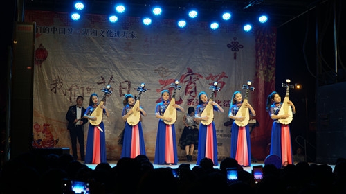 夜晚,一曲笙歌春如海。在老西门、鼎城区体育广场、常德诗墙抗洪纪念碑广场、白马湖公园广场和市文化馆剧场,各具特色的文艺演出同时上演。折子戏、丝弦、音乐情景剧、配乐诗朗诵、小品、功夫演唱、舞蹈等形式多样的文艺节目令人应接不暇,满足不同观众的艺术需求。晚会节目在设置上匠心独运,既有喜迎新春的舞蹈《春暖花开》,也有触人心弦的歌曲《当你老了》,还有勾人思乡的《你不来船不开》,更有常德丝弦与流行曲目完美融合的《青花瓷》,令人耳目一新,赢得观众掌声如雷。