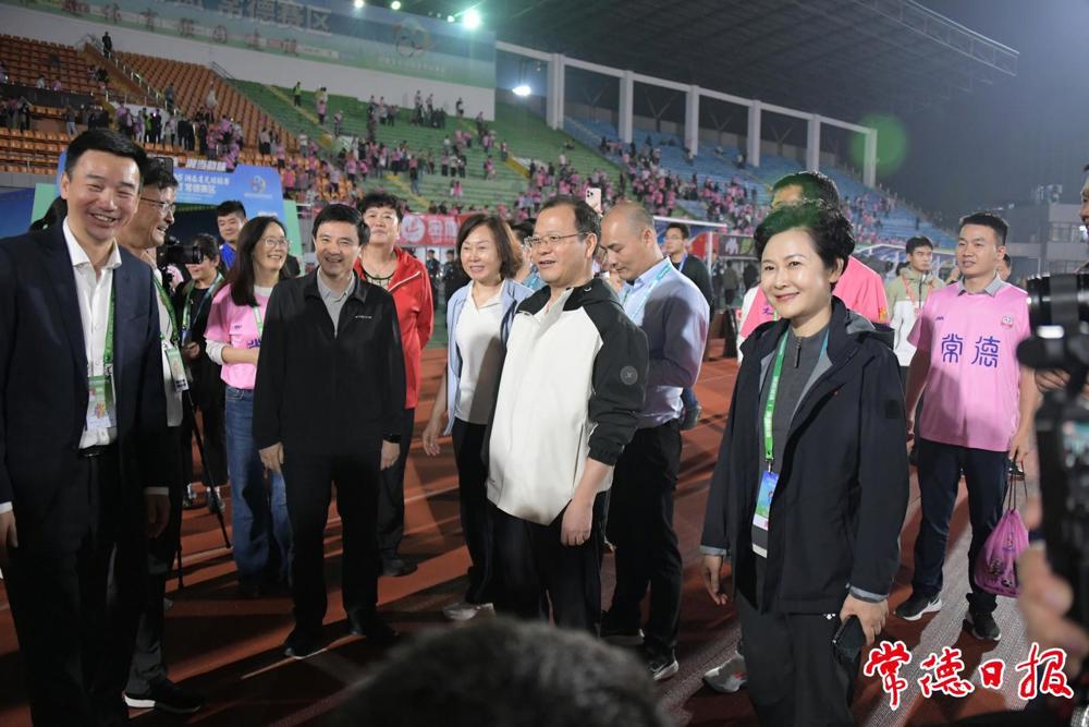 赛后,湖南省体育局党组书记熊倪,常德市委副书记、市长周振宇,常德副市长陈华等慰问了双方球员。