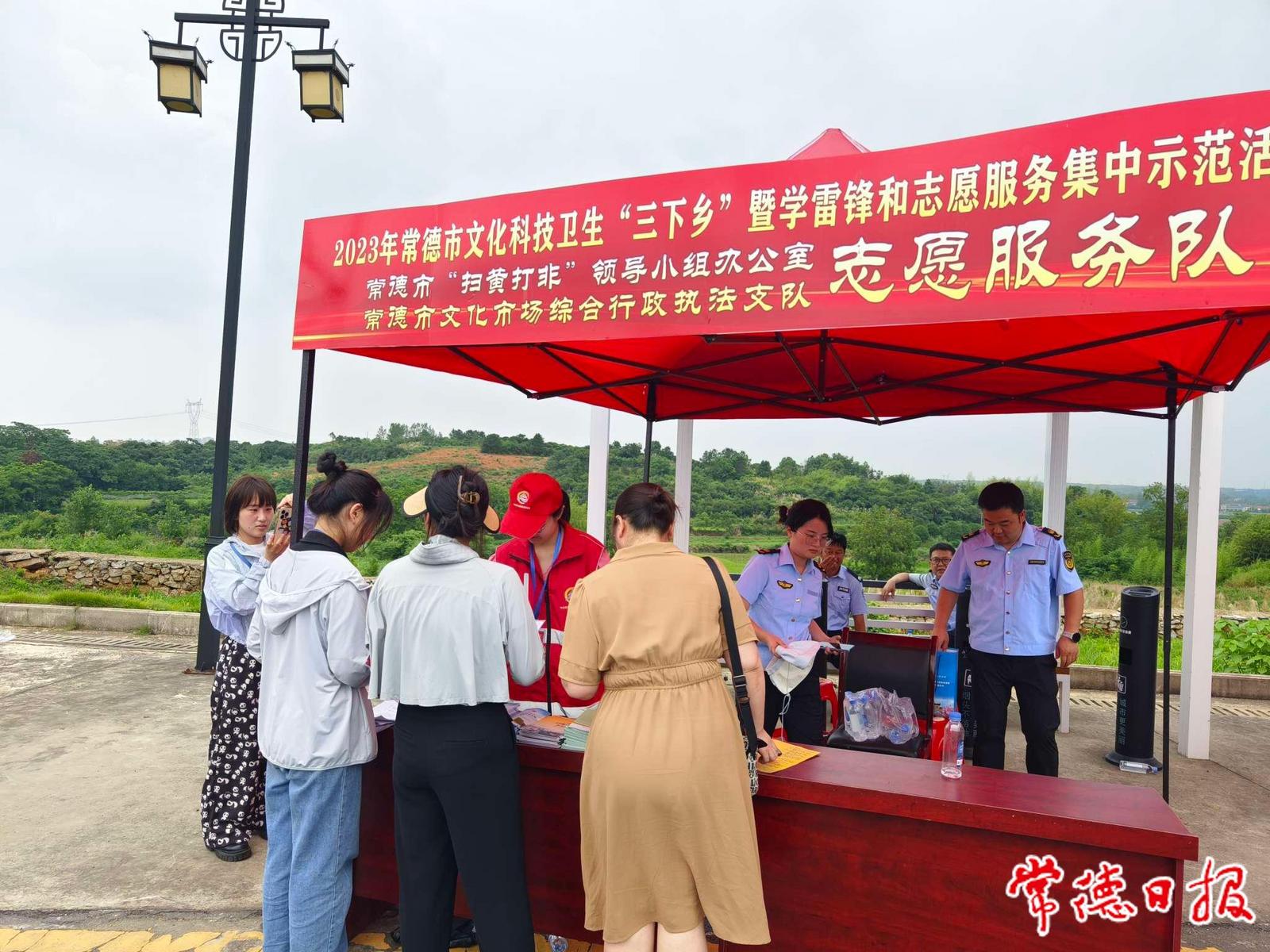 6月21日,常德市文化科技卫生“三下乡”集中示范活动在临澧县佘市桥镇蒋家村举行。市“扫黄打非”办公室以此为契机,联合市文化市场综合行政执法支队、临澧县“扫黄打非”办公室、临澧县文明办等部门,精心组织开展“护苗2023·绿书签行动”进农村宣传活动。
