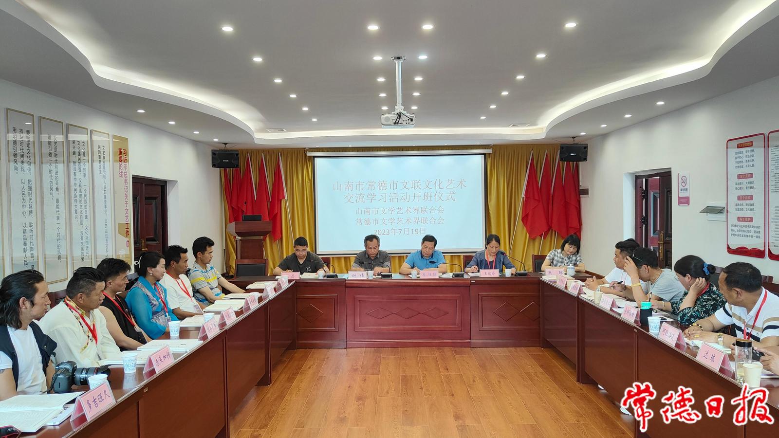 7月19日,山南市常德市文联文化艺术交流学习活动开班仪式在市文联举行,两市文艺工作者汇聚一堂交流探讨新时代文艺文联工作,培训主要内容为学习贯彻党的二十大精神以及书法、美术、摄影等理论知识讲座。此次学习交流活动自7月19日开始,至27日结束。17名骨干文艺家来自山南市行政机关、企事业单位和中小学校,他们肩负着加强两地文化交流、促进民族团结和社会和谐的使命。除了聆听讲座外,骨干文艺家们还将前往常德诗墙、常德画墙、常德河街、常德市丁玲纪念馆、桃花源旅游管理区、澧县城头山旅游景区、柳叶湖旅游度假区开展文艺创作实践活动。