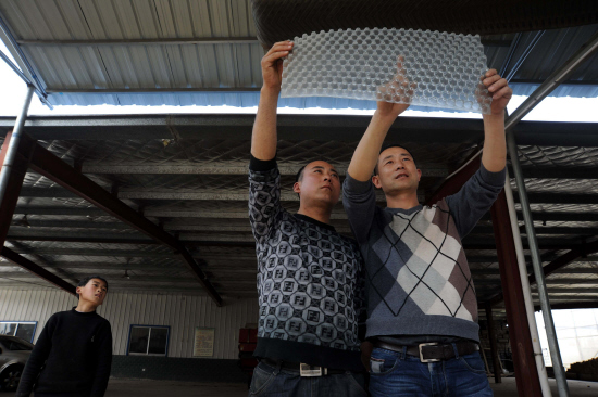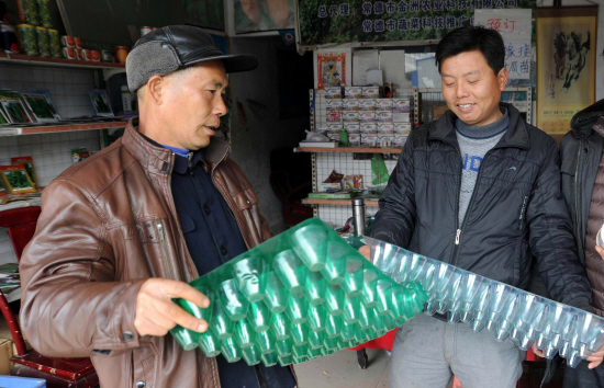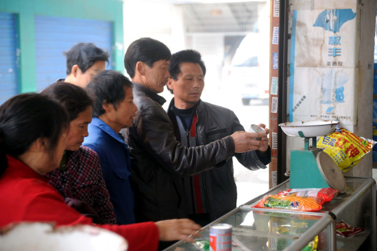 3月14日,牛鼻滩镇村民黄柏山、聂龙在农资市场购买软盘。