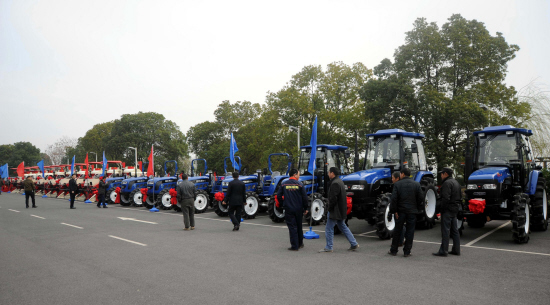 3月14日,市城区正在进行某品牌农机推广会,展出的农机吸引了众多大户前来参观。
