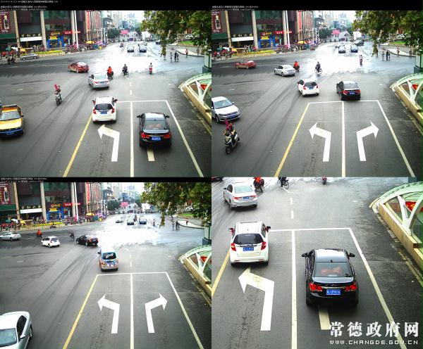 图1为9月16日14点32分,在市城区武陵大道与人民路交叉路口,被高清摄像头抓拍到的湘jomh26小车不按车道行驶图片