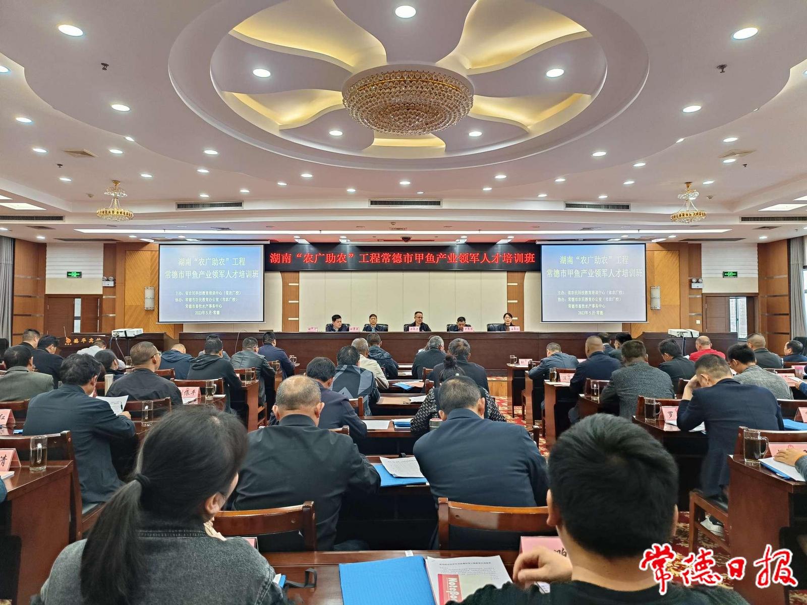 5月10日下午,湖南“农广助农”工程常德市甲鱼产业领军人才培训班在常德举行开班仪式。省农民科技教育培训中心(省农广校)主任(校长)傅胜才、常德市农业农村局二级调研员罗卫华、常德市农民教育办公室主任唐淑琼、常德市畜牧水产事务中心副主任胡华出席开班仪式。来自常德市各县市区的甲鱼养殖大户和从事甲鱼生产的技术人员等共100余人参加了培训。