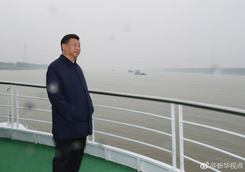 25日上午,习近平总书记驱车一个半小时,从宜昌前往荆州。在荆州港码头登上轮船,顺江而下,察看长江沿岸生态环境和发展建设情况,听取长江航运和航道治理、河势控制和护岸工程、非法码头整治等情况汇报。