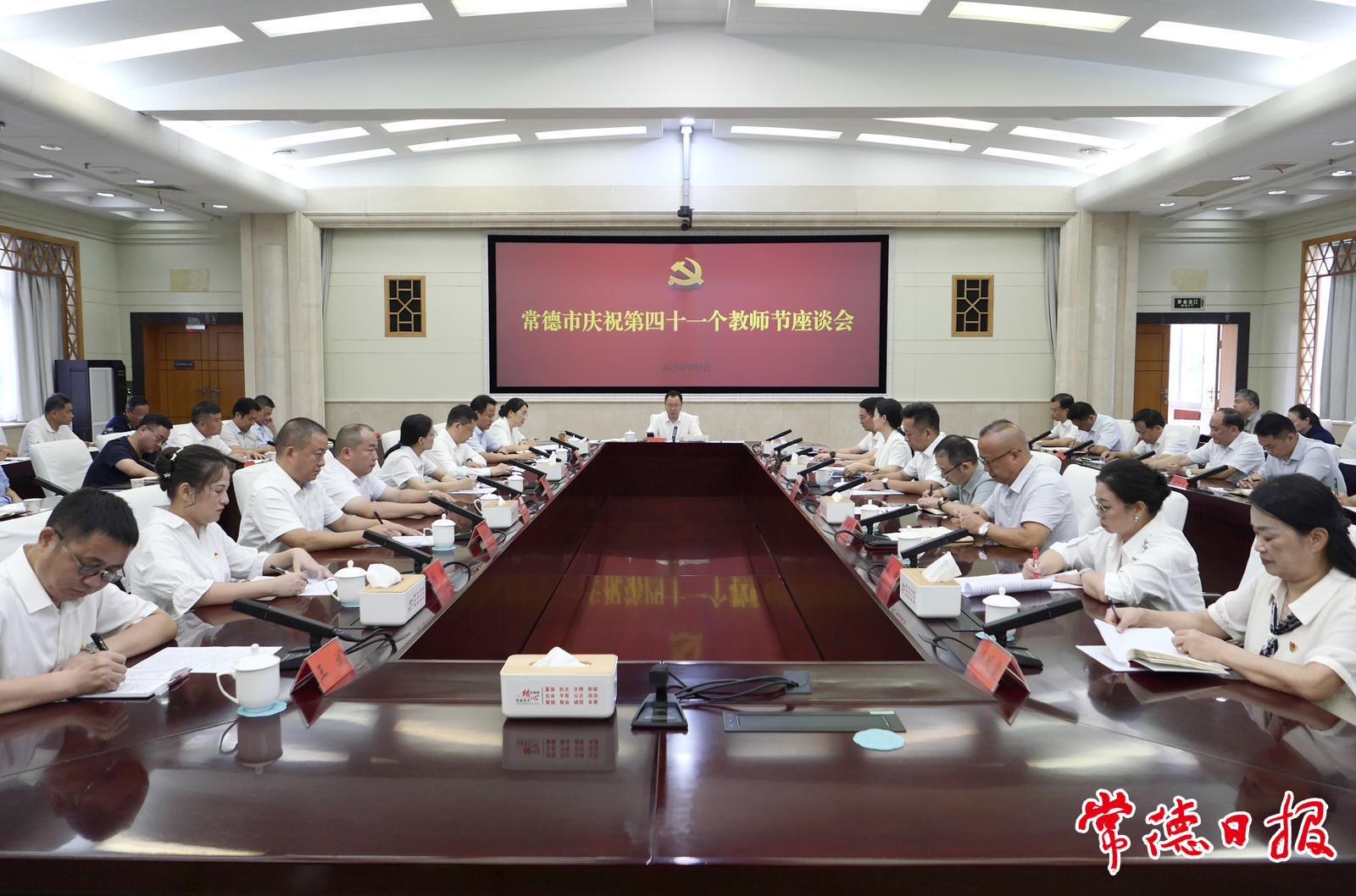 9月9日,常德市庆祝第四十一个教师节座谈会召开,深入学习贯彻习近平总书记关于教育的重要论述,庆祝第四十一个教师节,谋划推进教育强市建设。市委副书记、市长周振宇出席会议并讲话。
