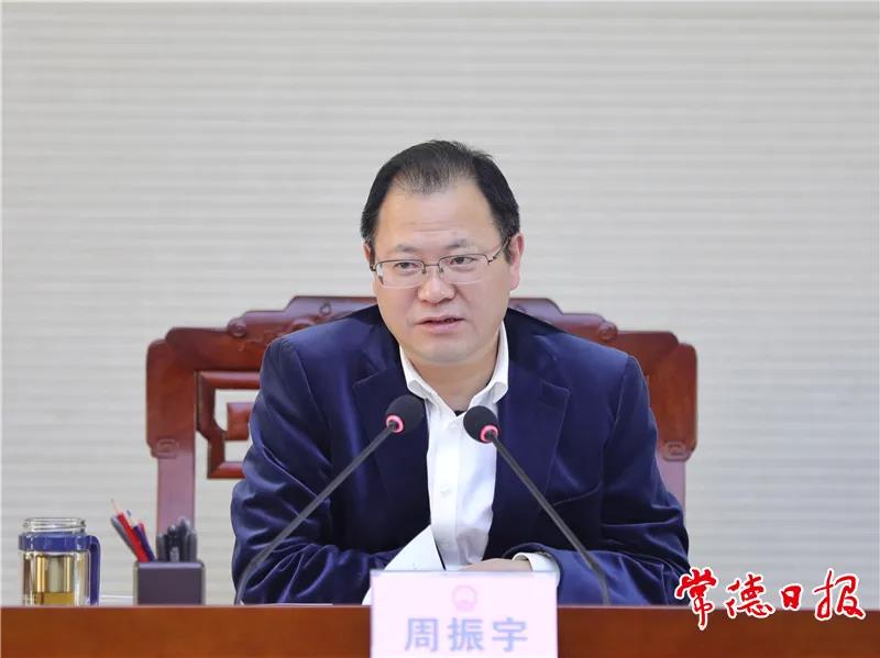 就抓好下阶段“三农”工作,周振宇强调,要坚持农业农村优先发展,以实施乡村振兴提速行动为统揽,立足常德的特色优势,围绕“强、富、美、稳”的目标,通过3至5年努力,加快把传统农业大市建设成为现代农业强市。“强”,即农业强。要大力建设全国生态农产品基地,打造千亿级健康食品产业集群,培育一批百亿级现代农业产业园区、百亿级农业产业化龙头企业,让“洞庭鱼米之乡”的品牌影响力、美誉度持续提升。“富”,即农民富。农民增收渠道要拓宽、致富能力要增强,进一步缩小城乡差距,实现共同富裕。“美”,即农村美。要通过持续的农村人居环境整治,建设一大批国家级、省级美丽乡村,让乡村更加宜居。“稳”,即粮食生产稳、乡村社会稳。要扛牢粮食安全政治责任,确保粮食等主要农产品供给保障有力。同时,确保乡村社会治理大局安全稳定。