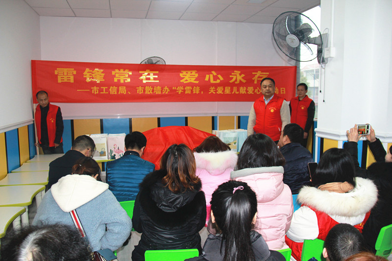 本次活动亦是市工信局、市散墙办开展“雷锋常在,爱心永存”学雷锋志愿者服务活动的生动实践,通过这种具体的行为来弘扬雷锋精神,并希望通过这种活动,引起社会各界的共鸣,让更多的社会爱心人士参与到关爱星星儿童的志愿者队伍中来。建材工业协会秘书长陈凤喜表示:协会愿意积极参与到社会关爱的公益活动中来,为星星儿童回归社会出智献力。
