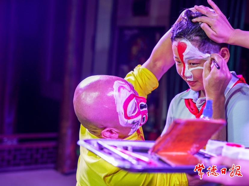 在大讲堂上,郭习军以生动的讲解和精湛的演技,向学生们展示了戏曲艺术的独特魅力。学生们不仅聆听了戏曲的历史和发展,还亲身体验了常德汉剧高腔脸谱妆容、翻跟头等传统技艺。