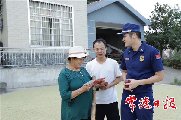 消防宣传服务队员走进村民家中开展金秋消防宣传。(市消防救援支队供图)
