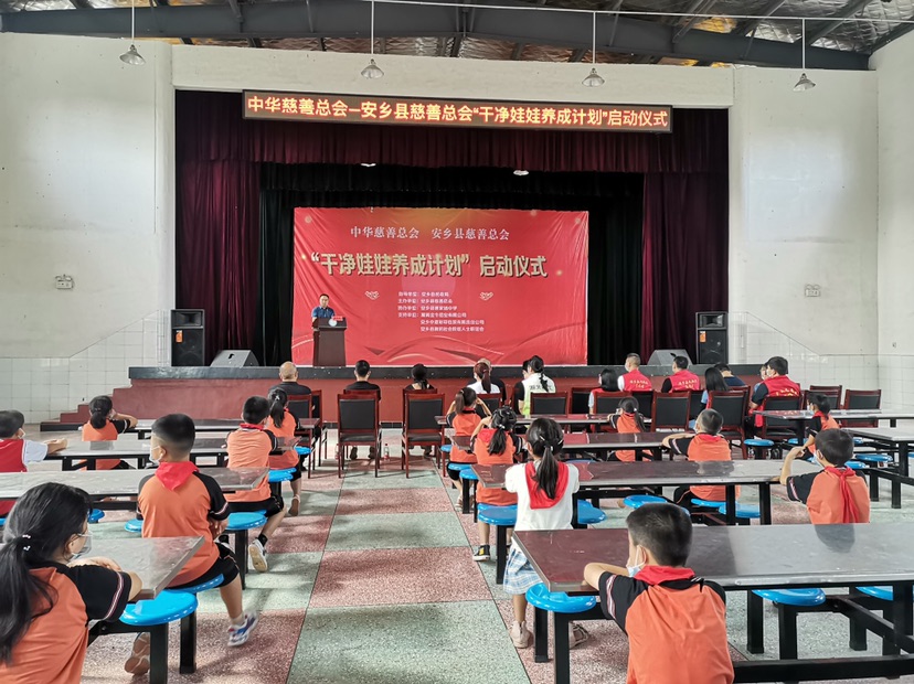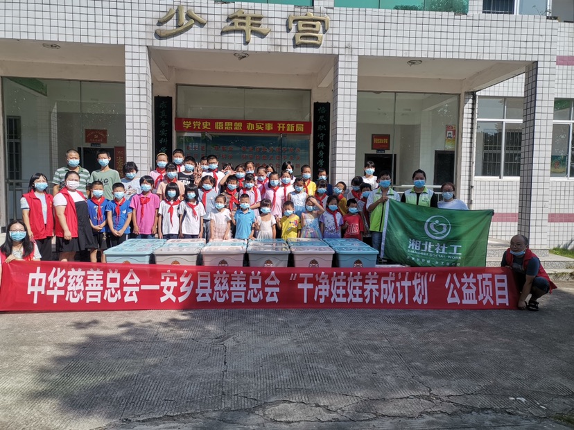 9月14日, 安乡慈善总会“干净娃娃养成计划”慈善公益项目启动仪式在安乡县三岔河镇唐家铺中学举行。现场100名困境留守儿童领到了包含洗脸盆、香皂、淋浴洗发液、毛巾等物品的“干净娃娃卫生习惯养成包”。