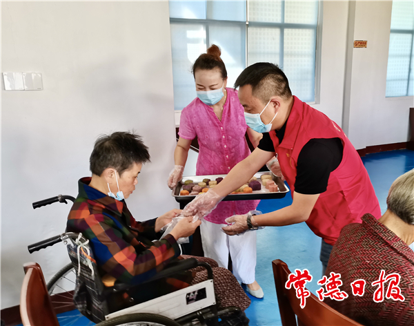 9月15日上午,武陵区丹洲乡组织志愿者来到丹洲乡敬老院开展“情系中秋节,爱满敬老院”活动,现场志愿者和老人们一起手工制作月饼,陪伴老人们提前过一个充满欢声笑语的中秋佳节。
