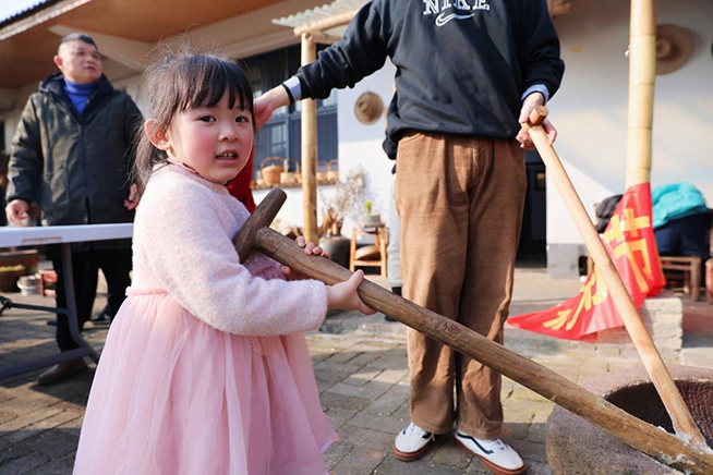 活动中,全体干部职工带领未成年子女开展了手工制作糍粑活动。糍粑也称年糕,具有浓厚的乡村风味,糍粑由糯米蒸熟再通过特质石材凹槽冲打而成,手工打糍粑很费力,但是做出来的糍粑柔软细腻,味道极佳。“嘿哈!”在打糍粑过程中,全体干部职工带领未成年子女积极参与,共同感受着打糍粑的乐趣,不仅拉近了孩子与家长的距离,还让孩子从小就感受到了优秀传统文化的魅力。