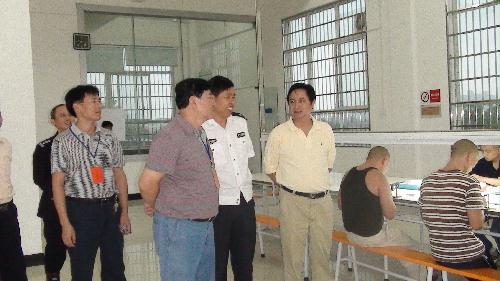 在市劳教所,王亲生副厅长一行冒雨直接进入劳教大院,实地查看了该所省市共建项目——劳教学员、强戒人员宿舍等基础设置建设,并现场了解劳教学员和强戒人员生活、学习、习艺等情况。在听取了工作情况汇报后,王亲生副厅长对该所今年的工作给予了高度评价,对劳教事业和强制隔离戒毒工作的前景表示乐观,对该所目前存在的实际困难(缺乏资金、缺乏人才、缺乏保障)表示会给予积极支持和帮助。