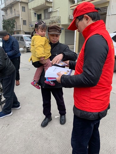 2019年元月18日,“法润三湘”武陵区公共法律服务志愿队一行志愿者来到武陵区丹阳街道柏子园社区开展志愿者活动,为居民老百姓发放公共法律服务集中宣传实物产品、介绍如法网、12348免费法律咨询电话、张贴公共法律服务志愿点海报。