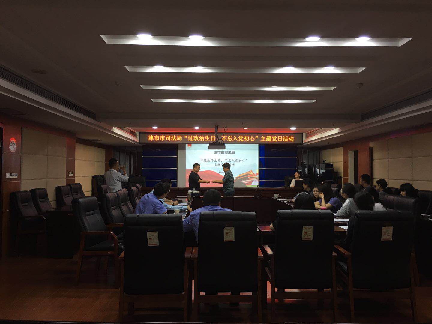 为认真学习宣传贯彻党的十九大精神,扎实开展“不忘初心、牢记使命”主题教育,5月31日,津市市司法局组织开展了“过政治生日,不忘入党初心”主题党日活动。