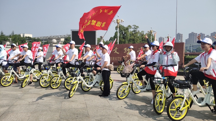 “健康人生,绿色无毒”、“禁绝毒品,共创平安。”7月3日上午,常德市万达广场禁毒彩旗飘扬,共享单车列阵,来自常德市强戒所、武陵区沙河社区戒毒康复工作站、武陵区致善社工服务中心、武陵区聚宝戒毒康复服务中心和鼎城区灌溪镇社区戒毒康复工作站的60余名戒毒民警、禁毒专干、禁毒社工和禁毒志愿者齐聚在这里举行禁毒志愿者骑行宣传活动。