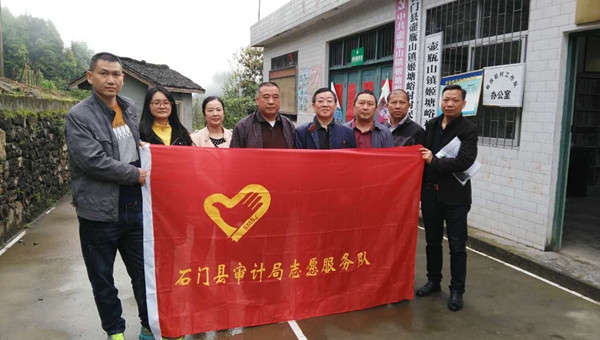 石门审计志愿者进村入户抓帮扶 来源:市审计局 2017-04-19 17:17 字体:【小 大】 近日,石门县审计局党组书记、局长汤永红带领部分志愿者,来到扶贫点村壶瓶山镇姬塘峪村,开展脱贫攻坚志愿服务活动。此次活动,主要是摸清贫困户家底,为贫困户送政策上门,宣传脱贫攻坚优惠政策、致富门路等。图为活动现场