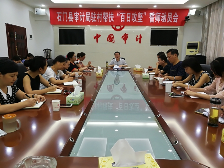 8月7日下午,石门县审计局召开驻村帮扶“百日攻坚”誓师动员会,会上传达了全县脱贫摘帽“百日攻坚”誓师大会精神,客观分析了本局脱贫攻坚工作现状,对下一阶段脱贫攻坚工作任务作了具体部署安排。