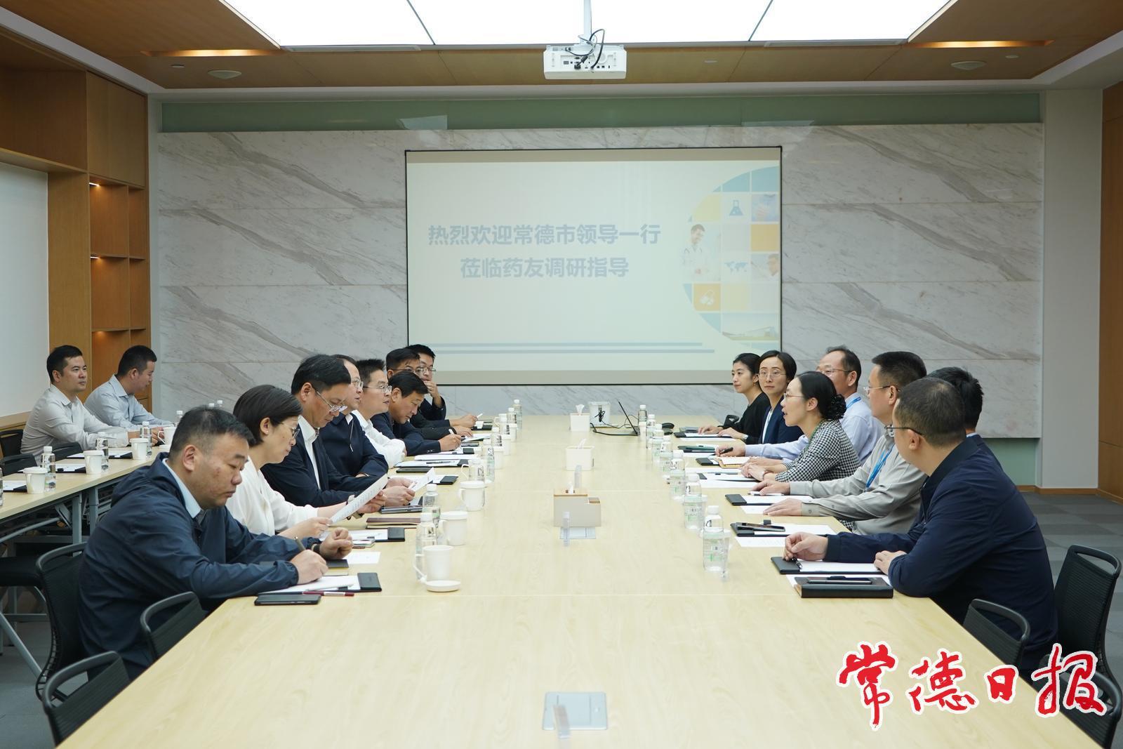 重庆药友制药有限责任公司是一家集研发、生产、销售于一体的现代化综合型制药企业,拥有多个国家级重点新药和专利产品。周振宇与该公司总裁张彦进行座谈,交流探讨合作事宜。周振宇期望该公司将更多药品品种放在常德生产,进一步放大常德公司的产能优势和区域价值,常德将以最优政策、全程服务,助力医药产业高质量发展。