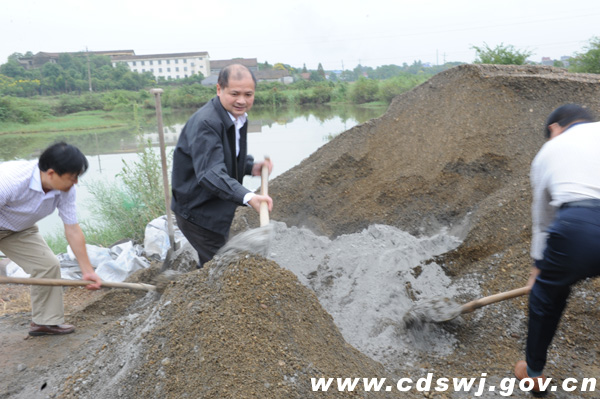 市商务局党组书记、局长吴德新修整村级公路局领导在拌匀混凝土