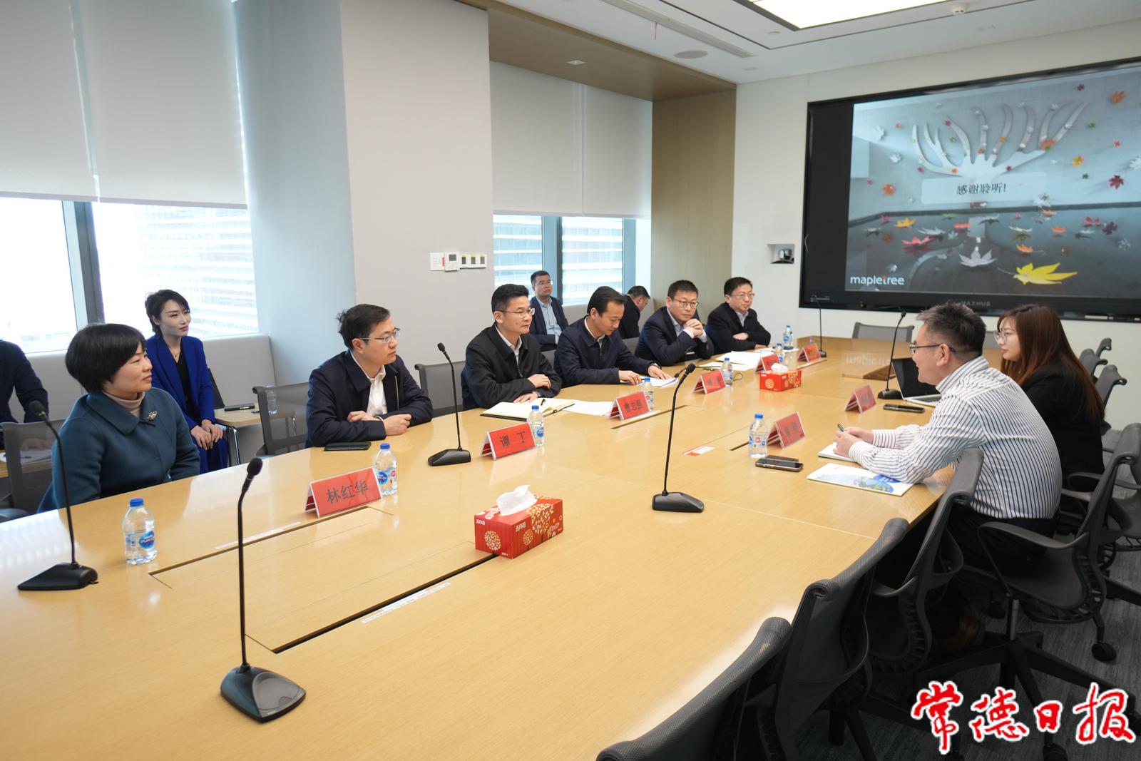 27日,曹志强一行来到深圳市,先后与深圳瑞德林生物技术有限公司董事长刘建、深圳同创伟业资产管理股份有限公司董事长郑伟鹤等企业负责人交流座谈。刘建、郑伟鹤简要介绍了公司发展情况,并感谢常德市委、市政府长期以来对企业的关心支持。他们表示将充分利用创新优势,积极发挥企业自身特点和平台作用,与常德深化多领域合作,加快优质项目引进落地,助力常德高质量发展。