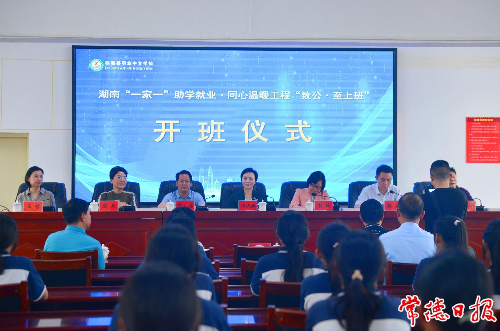 日前,湖南“一家一”助学就业·同心温暖工程“致公·至上班”开班仪式在临澧县职业中专学校举行。副市长、致公党常德市委会主委杨成英,湖南中华职业教育社秘书长冯立兵出席开班仪式,并为该班授牌。