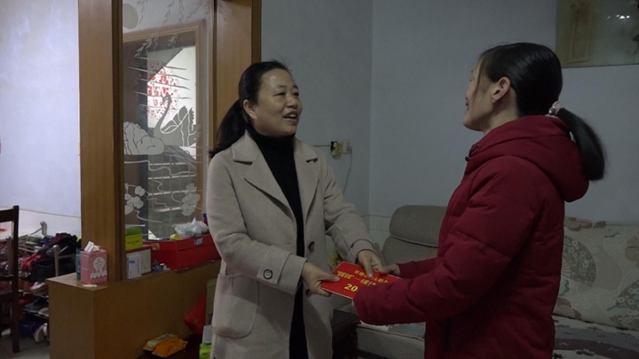 在园艺村困难妇女苏桂英家中,关蕾向其送上了慰问金,苏桂英家庭贫困,自己患有智力障碍,丈夫肢残二级,儿女都在上学读书,负担压力大,人口多收入少,生活困难,关蕾详细了解贫困户苏桂英最近的身体状况、就业收入、子女上学和医疗保障等情况,细心查看他们的住房环境,了解他们生产生活中存在的实际困难,同时鼓励他们在新的一年里增强信心,克服困难,充分发挥自身特长,争取早日脱贫致富。