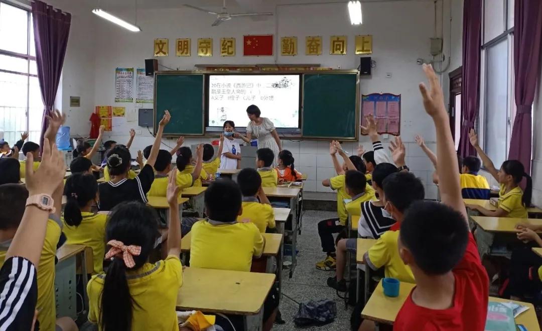 知识抢答赛。填空、选择、判断……内容涵盖一本甚至几本书的题目完全难不倒阅读小达人们。“我会……”“我来……”答题现场气氛热烈,充满欢声笑语。