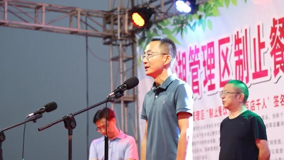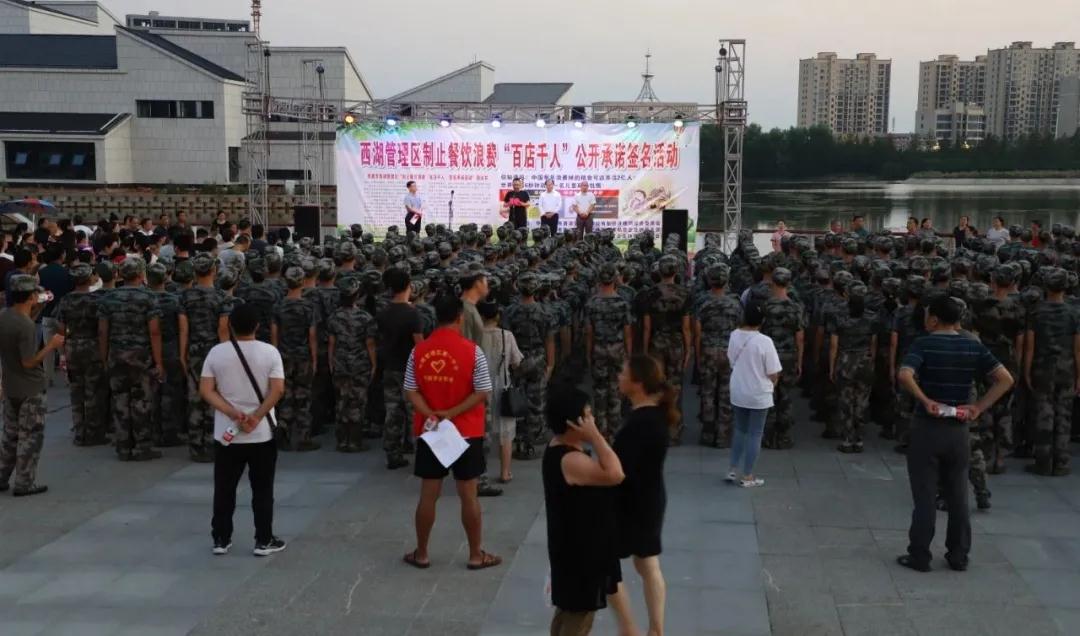 8月27日晚,西湖管理区在西湖公园举行制止餐饮浪费“百店千人”公开承诺签名活动,倡导全区社会群体、餐饮行业和学校师生拒绝“舌尖上的浪费”,践行“光盘行动”,理性消费,在全社会营造浪费可耻、节约为荣的氛围。