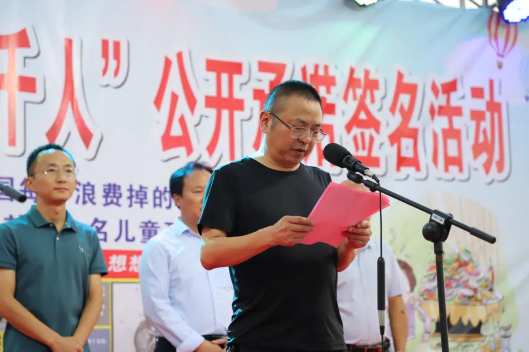活动现场,区党委委员、武装部长周时杰,市监局局长莫佳文,个私协会会长陈剑中分别就全区举办“百店千人”公开承诺签名活动的目的和意义做了发言,倡导广大市民和学校师生摒弃陋习,传承节俭美德,崇尚绿色消费,按需适量消费,善待每一碗饭,爱惜每一粒粮,让节粮惜粮意识入脑入心,争做崇高道德的践行者、文明风尚的维护者、美好生活的创造者。