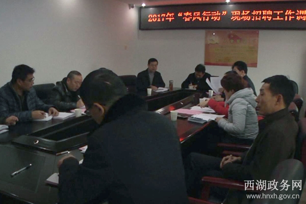 西湖政务网2月7日讯(记者 谢丽莉)2017年“春风行动”现场招聘会将于2月9日上午9时在区人社局举行,2月6日上午,区人社局召开工作调度会,安排部署招聘会相关事宜。