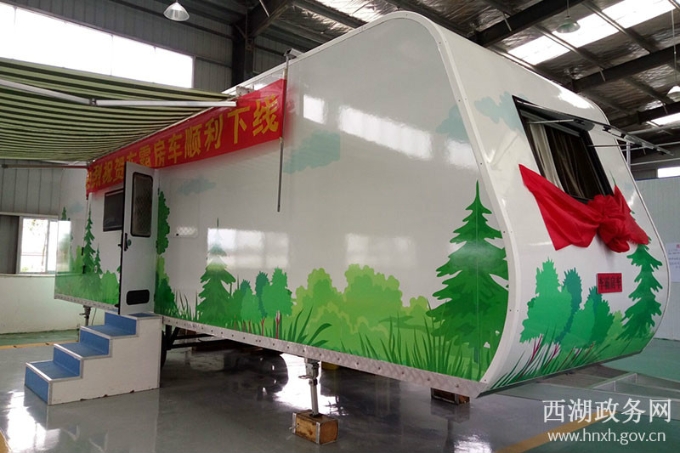 西湖政务网6月27日讯(记者 刘卫平)6月25日下午,由常德车霸汽车用品有限公司与常德泰顺房车露营公园发展有限公司签订的首台拖挂式房车顺利下线。区党委书记龚霞波、党委委员、区武装部长何岩及区科技工信局、双方公司高层领导和部分员工共同见证了下线剪彩仪式。