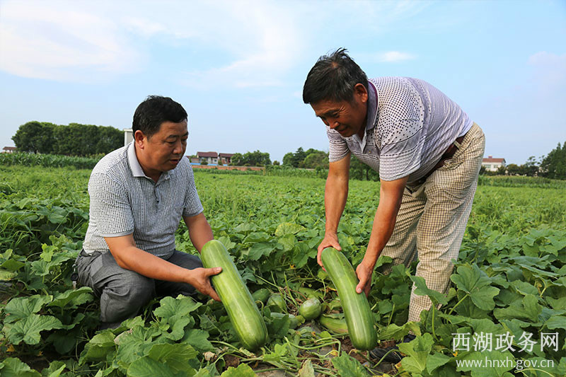 西湖政务网6月30日讯(记者 刘卫平 颜睿)6月28日下午,记者随同区农业局刘登勇局长来到西洲乡新兴村巧逢常德农博士蔬菜种植专业合作社理事长邓军光正在田地里指导农民进行蔬菜瓜果制种。