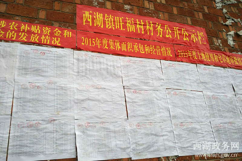 据悉,此次检查的内容包括村级财务收支情况,移民后扶、危房改造、低保补贴等补贴救助资金发放情况,土地使用和宅基地审批情况,集体面积承包和经营收支情况,发展新党员情况,计划生育管理情况等。区纪委要求各乡镇党委、纪委要按规定时间将村务公开及时张贴至村部或各组主要居住地,并加盖乡镇政府、纪委、财政所、村委会公章,由区纪委、区监察局组织进行统一检查,确保公开及时、数据准确。(通过检查发现,西湖镇各村组都按照规定时间将村务公开进行了张贴,操作规范、公开及时。同时欢迎群众对此项工作继续进行监督举报,区纪委举报电话—2822314。