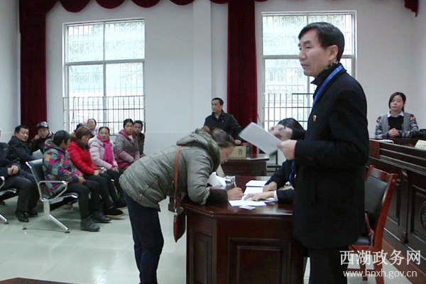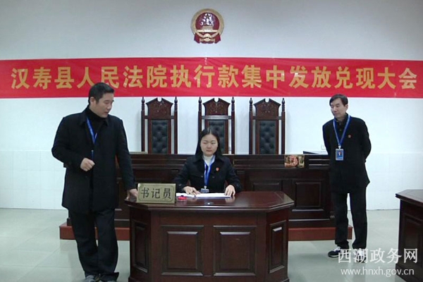 日前,执行庭在西湖法庭对46位追索劳动报酬的申请执行人进行工资款集中发放、履行法律程序,有效地保护了农民工的合法权益。