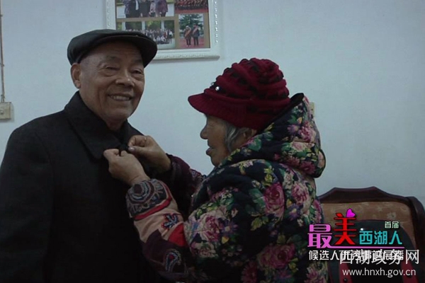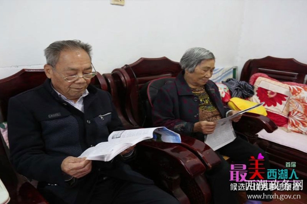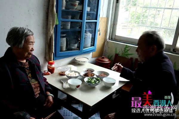 镜头里这位老人就是我们今天的主人公——老党员杨伯寿,今天就让我们走进他的生活,了解他的故事。杨伯寿老人现在已是81岁高龄,西湖社保局退休老干部,旁边这位老人是他的妻子陈幺妹,80岁,俩人于1954年结为夫妻,婚后夫妻俩恩恩爱爱,相濡以沫,可谓相敬如宾,称得上是一对令人羡慕的钻石婚伴侣。夫妻俩共同生活60年来,育有一儿四女,他们尊敬老人、关爱子女、邻里和睦,用生活中平平凡凡的事、点点滴滴的情诠释了当今夫妻的典范,是名副其实的好夫妇。