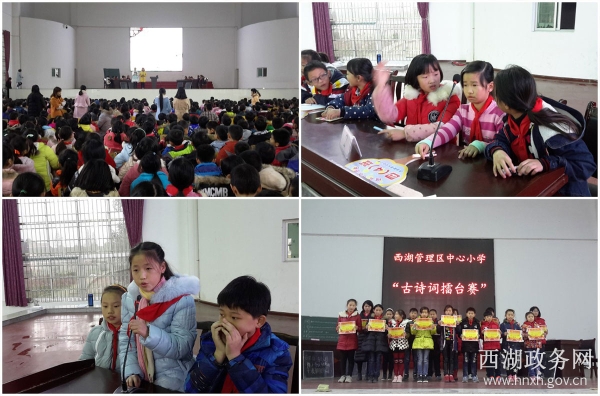 西湖政务网12月17日讯(通讯员 郑敏)12月14日,西湖中心小学在多功能大礼堂举行了古诗词擂台赛。来自该校四至六年级的12个代表队,共42名选手参加了比赛。