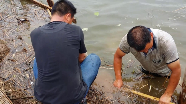 7月8日,星期六,正是内江高温退水期,西洲乡防汛分指报告,黄泥湖村连通新北河的将军塘出现滑坡险情。接到险情报告后,区防指急调技术人员及防汛物资、设备赶赴现场,并从西洲乡防汛分指调派抢险队员进行实战练兵。