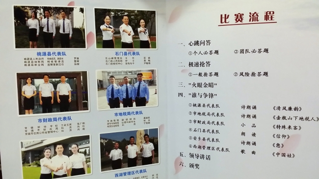 此次比赛是常德市以“赛”促“学”,全面开展“荷花品格、梅花精神”活动的一个缩影。经过初赛、复赛,我区由纪委书记胡岚带队组成的三人小组,一路过关斩将,以优异成绩闯入决赛,最终与桃源县、石门县、安乡县、市财政局、市地税局五支代表队在决赛现场展开正面交锋。