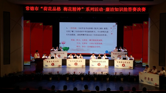 9月30日下午,常德市“荷花品格•梅花精神”系列活动-廉洁知识抢答赛决赛在常德白马湖文化公园完美落幕。我区代表队在竞赛中沉着应战、力克群雄、一举夺魁!