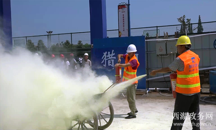根据工程实际情况,猎豹公司开展了包括火灾事故、触电事故等常规施工现场易出现的安全事故应急演练。演练现场,住建局工作人员现场讲解了灭火器的使用方法,人工生火后,应急救援队使用灭火器进行灭火操作,并用沙石覆盖;在触电事故演练中,施工人员进行触电模拟,救援队人员迅使用木棒挑开电线,关闭电闸,用担架把触电人员带离现场。